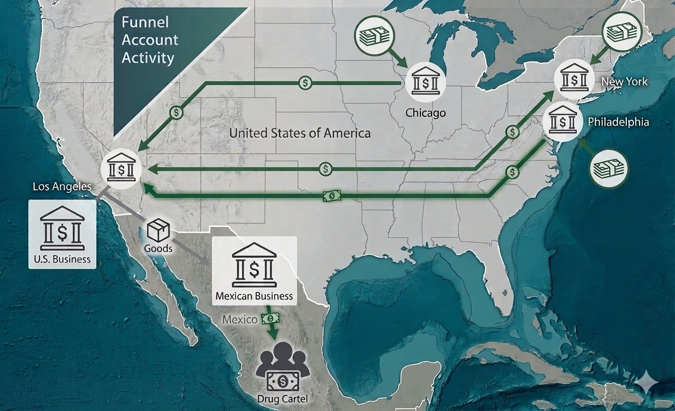 The literature is especially useful here because it shows that funnel accounts are rarely just about cash concentration. They may be linked to trade payments, to the use of intermediaries such as money brokers, or to cross-border settlement mechanisms that give illegal proceeds a more legitimate commercial appearance.